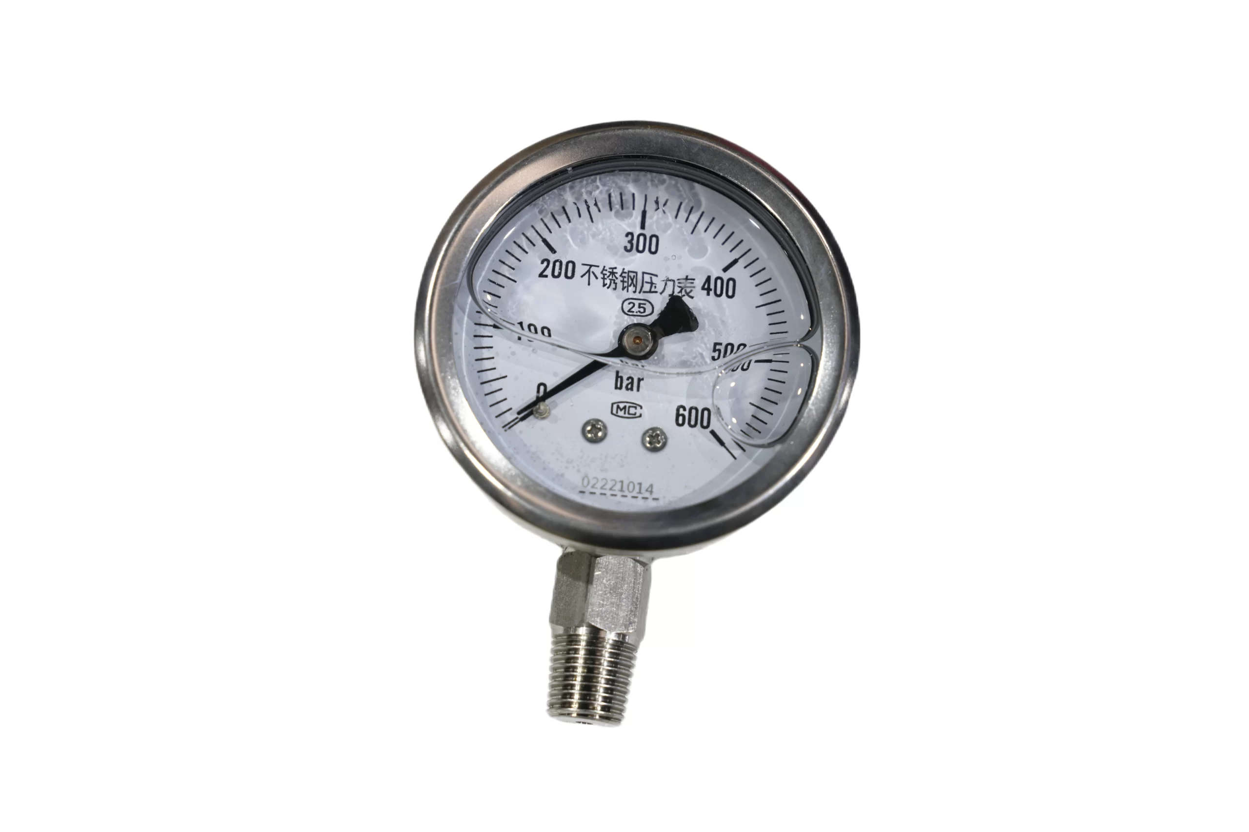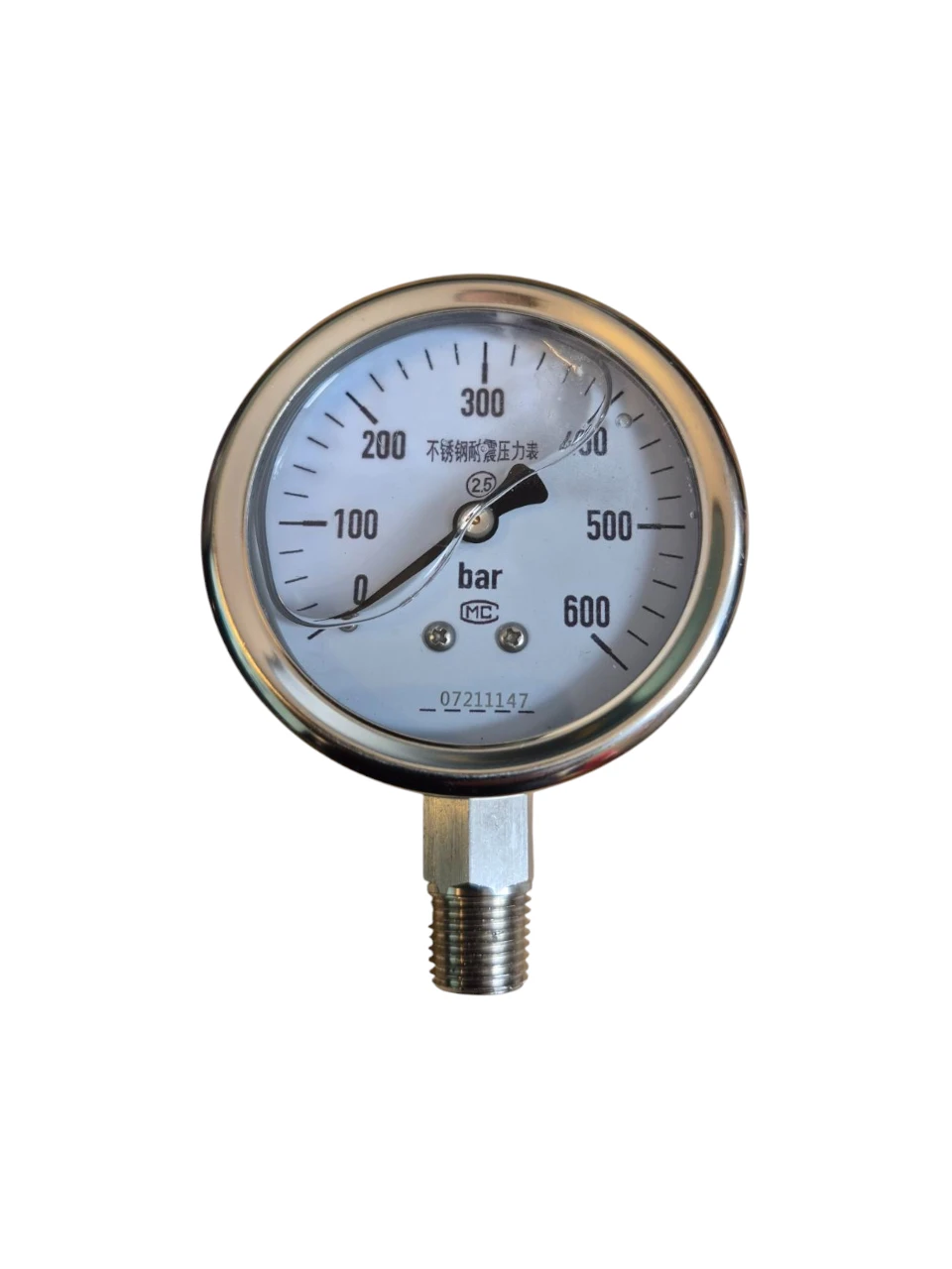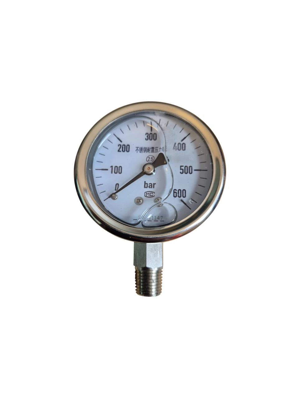 | Description | Pressure Gauge 600 Barg Oil Filled Glass 1/4 Inch Male BSP thread Material Construction SS316 Face Diameter 70mm |